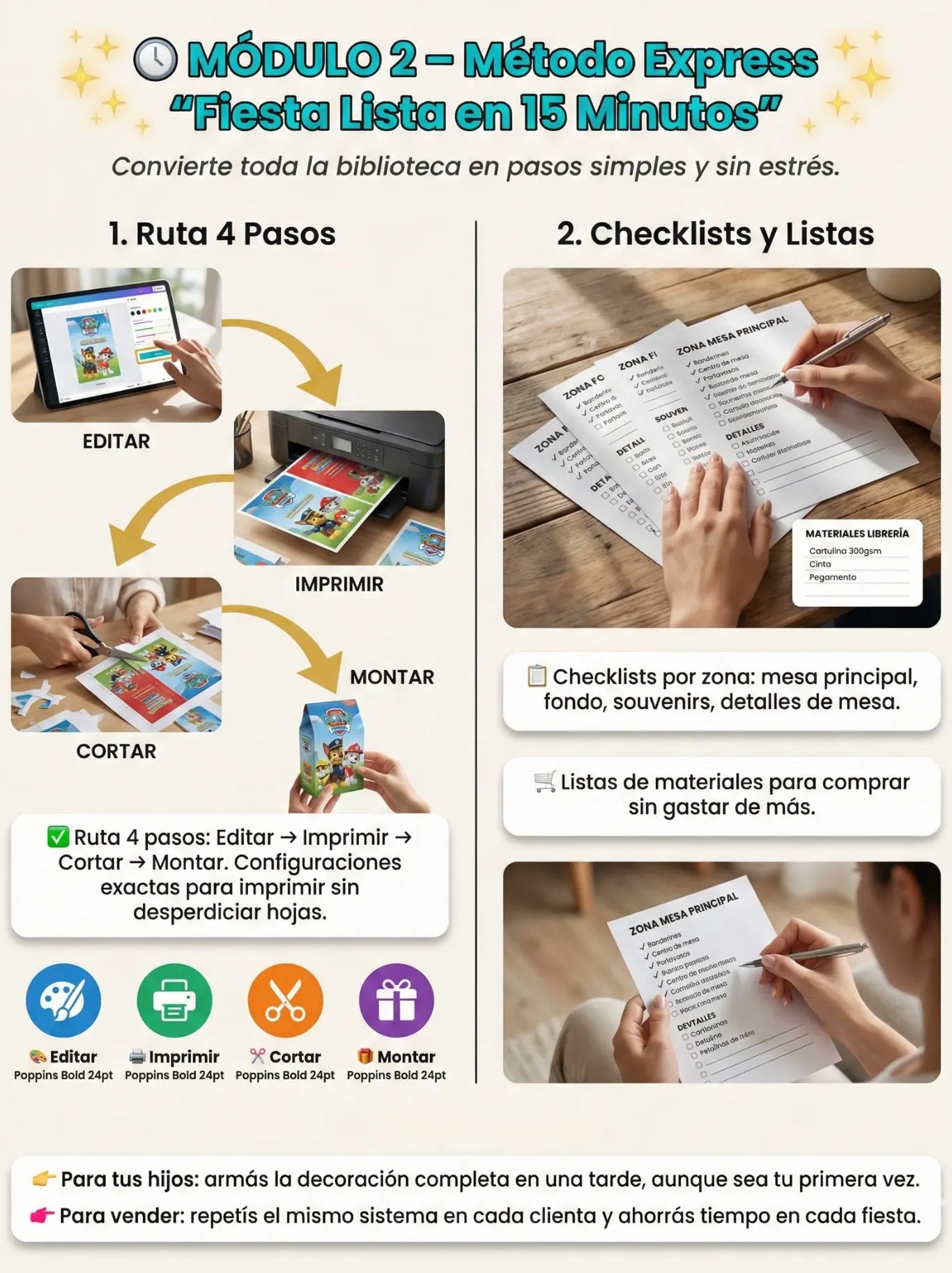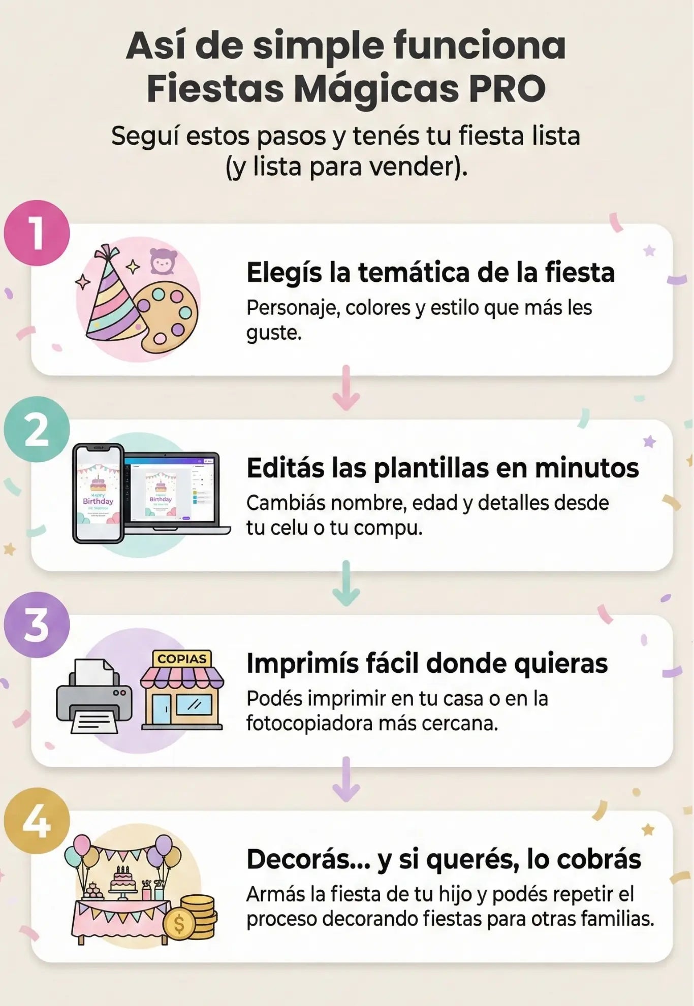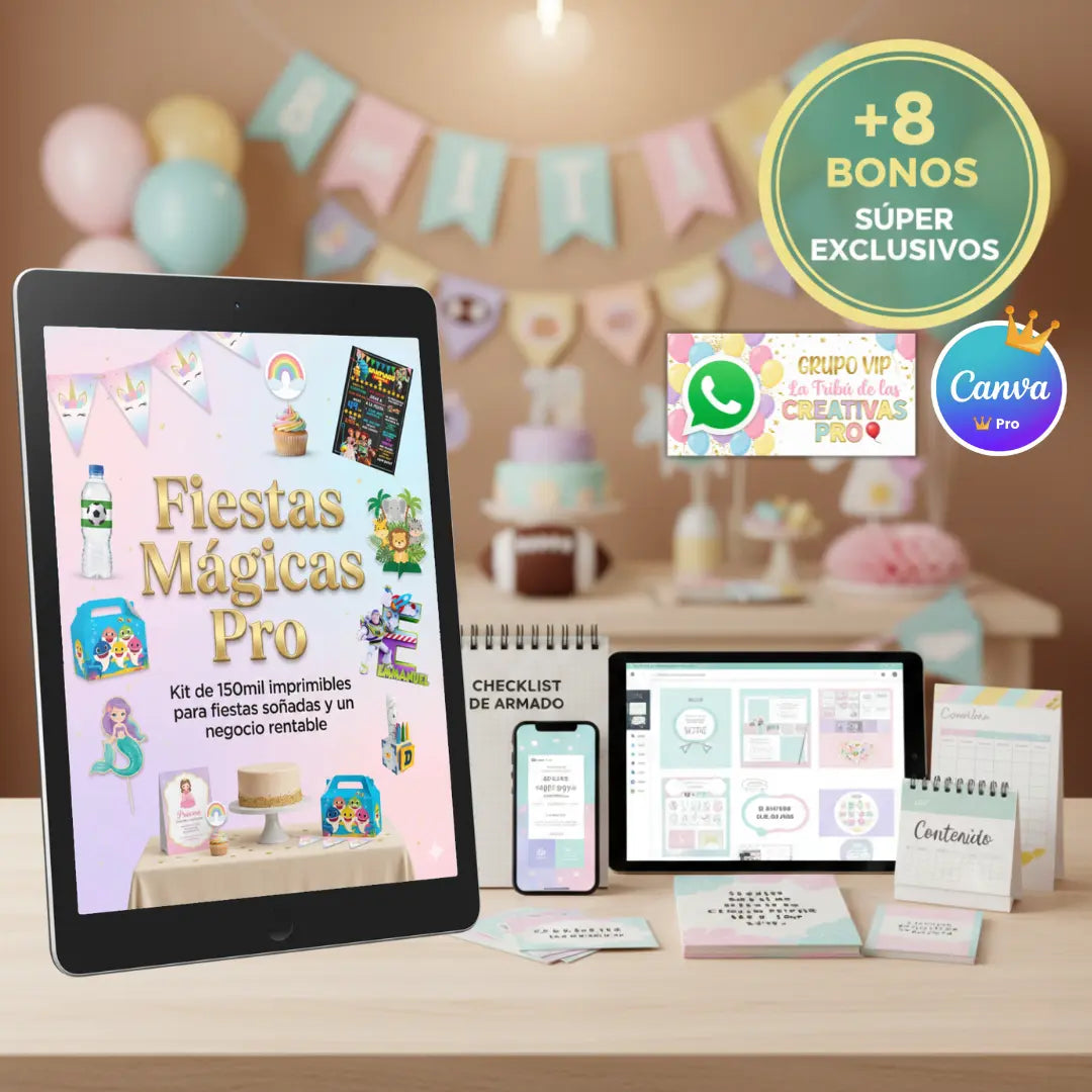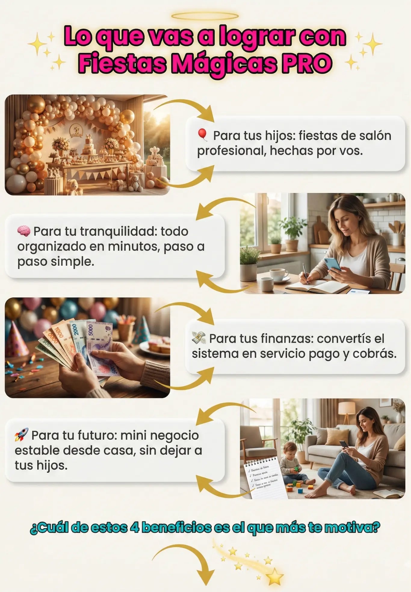 Es tu comunidad privada por WhatsApp con más de 1300 mamás decoradoras activas. Recibís ideas semanales de fiestas trending, acceso a proveedores confiables, mini-tutoriales rápidos y respuestas inmediatas a todas tus dudas. El link de acceso te llega en tu email de compra al instante.