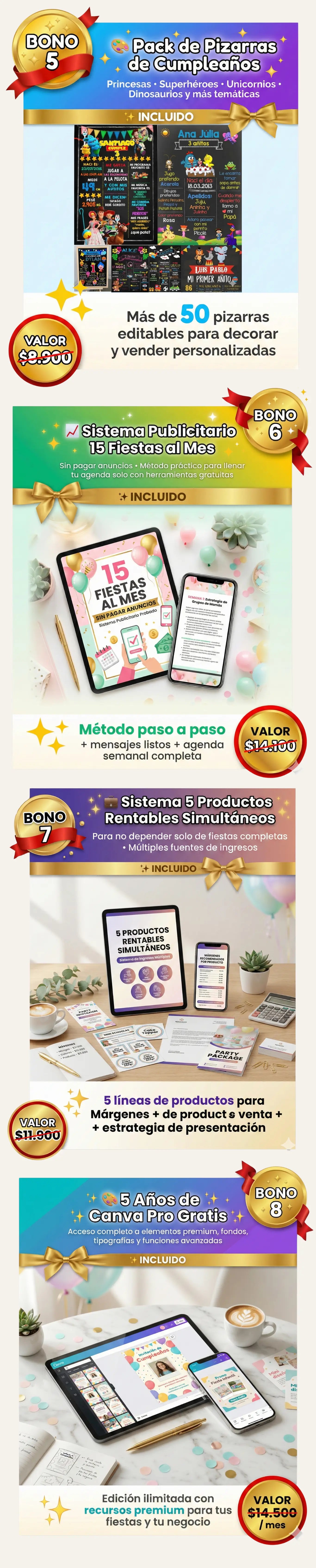 Todos los bonos están incluidos en tu compra. No pagás nada extra.